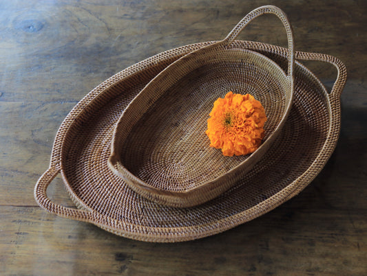 Hand Woven Atta Basket ~ Made in Bali ~ Beautiful Oval Wave Design