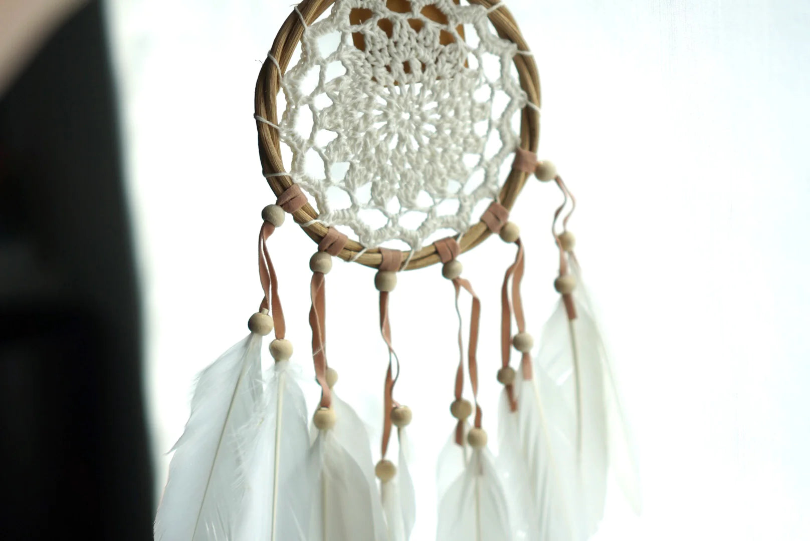 Handmade Decorative Dreamcatcher of round shape with feathers design.
